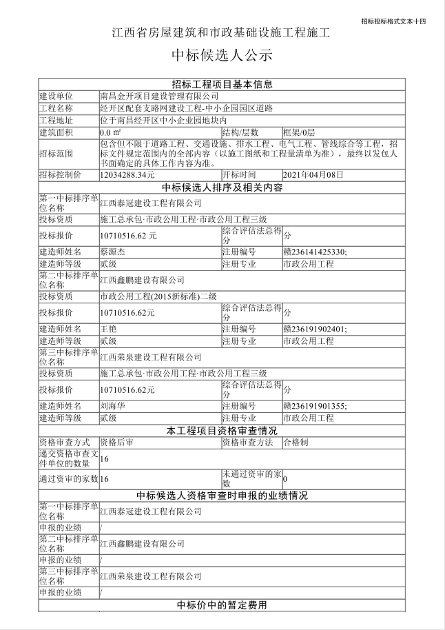 江西省房屋建筑和市政基礎(chǔ)設(shè)施工程施工中標(biāo)候選人公示